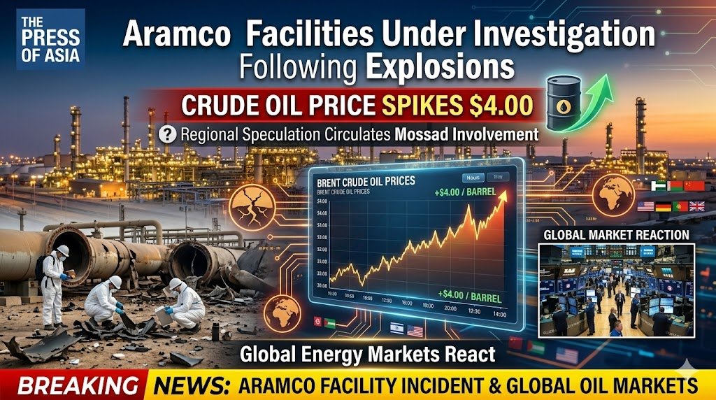 Explosions reported near critical infrastructure linked to Saudi Aramco have sent shockwaves through global energy markets, prompting a spike in crude oil prices and raising fresh concerns about stability in West Asia.