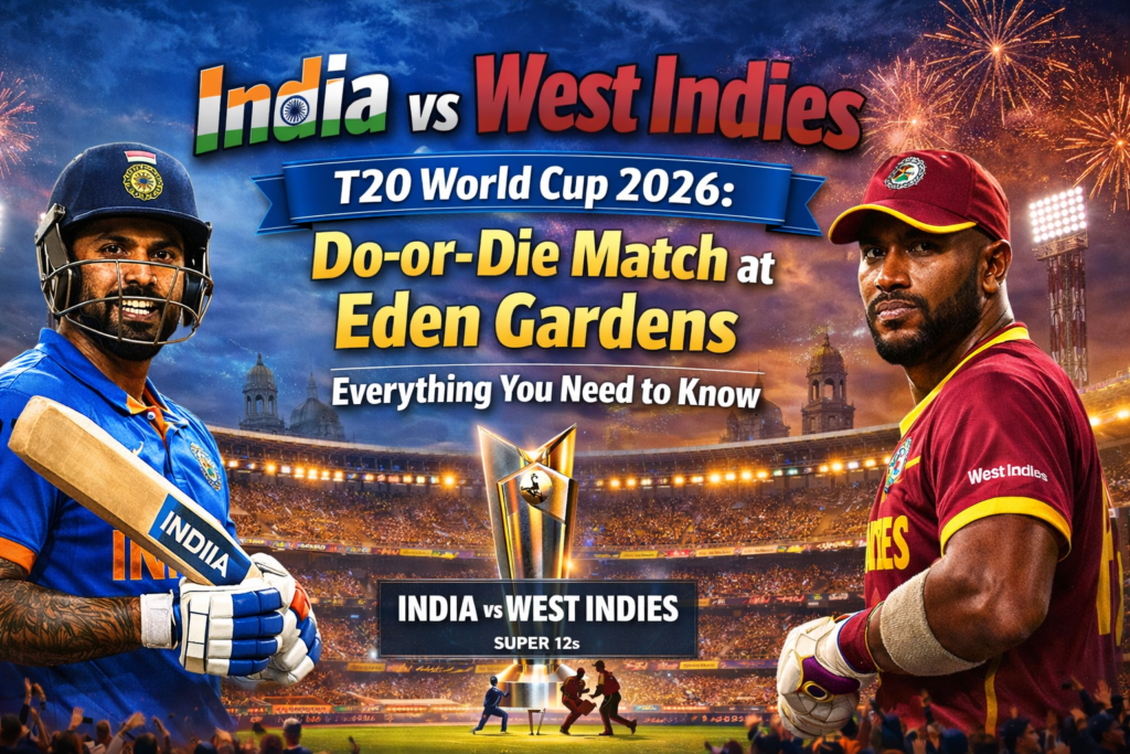 The Indian cricket team faces its biggest challenge of the T20 World Cup 2026 as they prepare for a crucial do-or-die Super 8 clash against the West Indies at Eden Gardens in Kolkata on Sunday, March 1, 2026. A win is mandatory for India to progress to the semi-finals, while a loss will end their title defence.