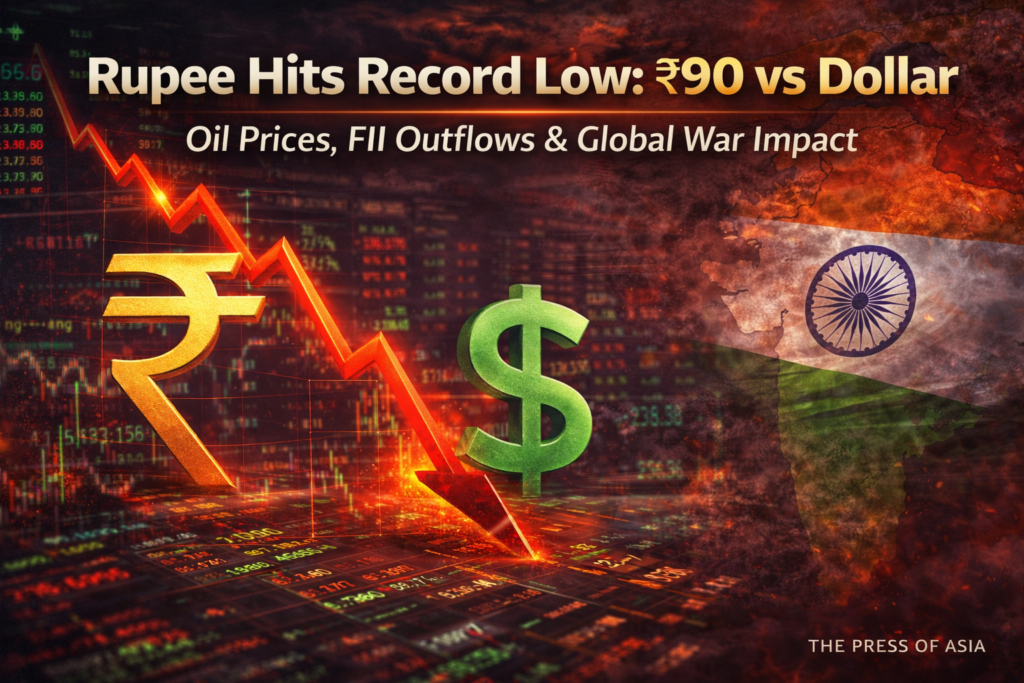 The Indian Rupee’s fall to Rs 90 against the dollar is a significant economic development reflecting both global headwinds from the Iran war and domestic factors including oil import dependency and FII outflows. While the RBI’s intervention has prevented a sharper fall, the fundamental pressures pushing the rupee lower will persist as long as oil prices remain elevated and global uncertainty continues. The government and RBI face difficult policy choices between protecting currency stability and maintaining growth momentum. For Indian citizens, the immediate impact will be felt through higher fuel prices and increased costs of imported goods. A de-escalation of the Iran conflict would be the most effective remedy for rupee weakness. Press of Asia will continue to track the rupee’s movement and its impact on the Indian economy.