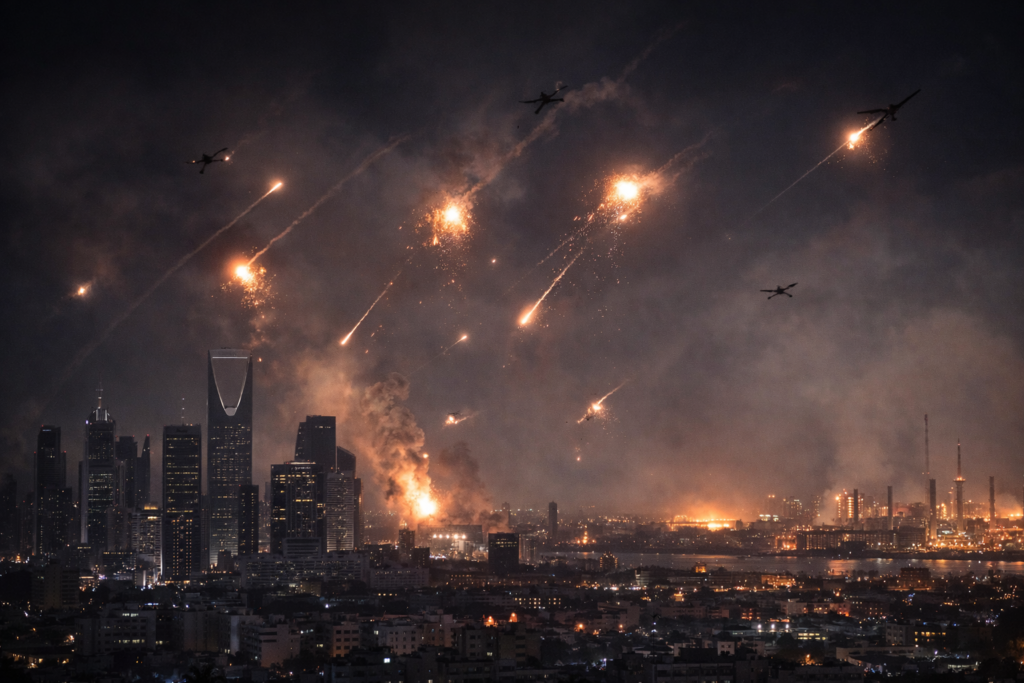 On Saturday evening, Saudi air defenses also destroyed six ballistic missiles launched toward Al-Kharj. The intensity of attacks marks a dramatic escalation—Iran has shifted from sporadic strikes to sustained aerial campaigns designed to overwhelm Gulf defenses and strike at the heart of the region’s energy sector.