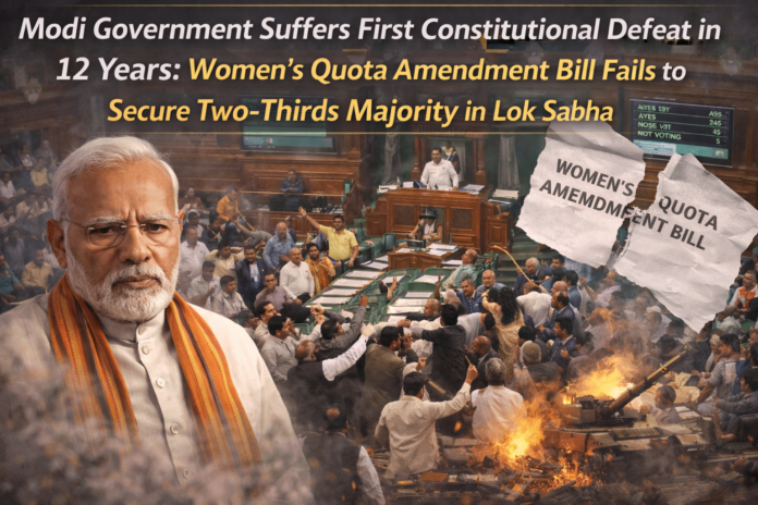 Modi Government Suffers First Constitutional Defeat in 12 Years: Women’s Quota Amendment Bill Fails to Secure Two-Thirds Majority in Lok Sabha