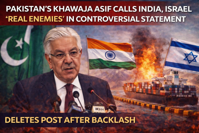 Islamabad, April 14, 2026: Pakistan’s Defence Minister Khawaja Asif has sparked widespread controversy after declaring India and Israel as the ‘real and eternal enemies’ of Pakistan and the Muslim world during a heated speech in Pakistan’s National Assembly on April 12, 2026. The statement, which was later posted on his social media account, drew sharp criticism both domestically and internationally, forcing the minister to delete the post amid mounting backlash. The incident has reignited debates about Pakistan’s foreign policy approach and its relations with neighboring India.