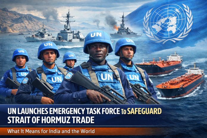 United Nations/New Delhi, March 30, 2026: In a significant multilateral response to the Iran-US-Israel war and the resulting threat to global trade, the United Nations Secretary-General Antonio Guterres has announced the formation of a special emergency Task Force to safeguard trade through the Strait of Hormuz. The announcement comes as oil prices surged past $116 per barrel and global shipping has been severely disrupted by Iran’s partial blockade of the vital maritime chokepoint. For India — one of the world’s largest importers of Middle Eastern oil — the UN move could be a critical lifeline for energy and food supply security.